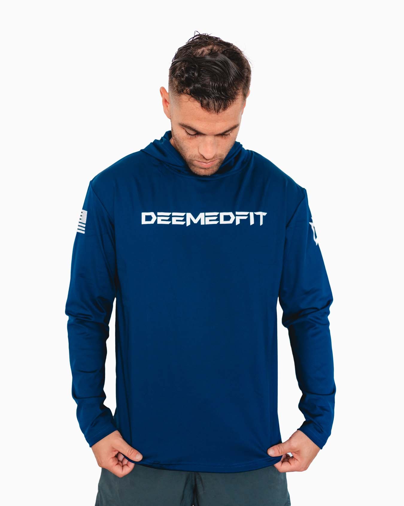 Crafted with a premium polyester-nylon blend (65% polyester / 35% Lycra), this hoodie delivers lightweight breathability, moisture-wicking technology, and a sleek, athletic fit to keep you moving comfortably. The specialty drop-cut hem adds a modern edge, ensuring a sharp look wherever you go.